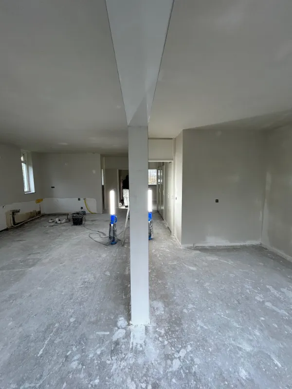 Sommige projecten vragen letterlijk om lenigheid en precisie. Denk aan smalle trappenhuizen, kleine zolderkamers of plafonds op grote hoogte. In zulke situaties werken we met speciaal gereedschap en passen we onze werkwijze aan op de ruimte.